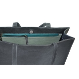 Väskan har ett stort innerfack med dragkedja och dessutom en snygg smyckekedja